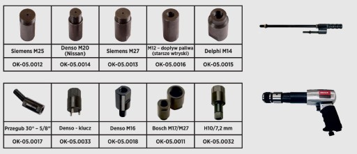 Zestaw vibro system do wyciągania wtryskiwaczy zawiera: