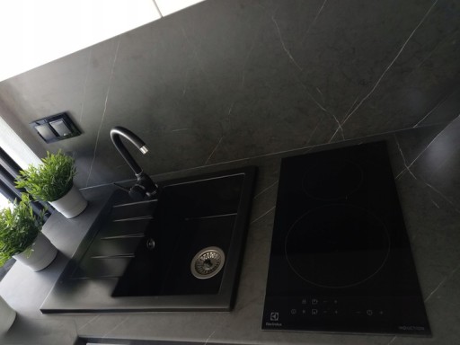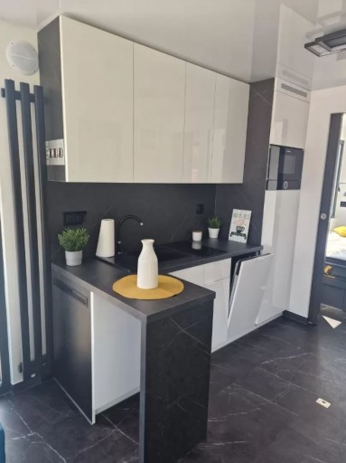 - Szafy: Pod zabudowę akrylowana z blatem L-kształtnym