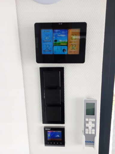 - Stacja pogody: Podłączona pod instalację domku, z kolorowym wyświetlacz LED.