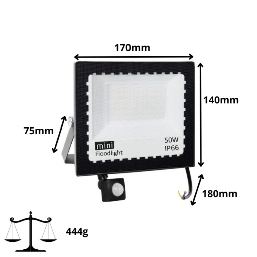 ГАЛОГЕННЫЙ СВЕТОДИОДНЫЙ ПРОЖЕКТОР 50 Вт ДАТЧИК ДВИЖЕНИЯ НАРУЖНЫЙ ДЛЯ СКЛАДА