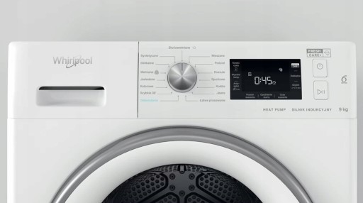 Cechy wolnostojącej suszarki bębnowej Whirlpool: wyjątkowa pojemność bębna wynosząca 9 kg, dzięki której nigdy nie zabraknie miejsca. Wyjątkowa technologia 6. Zmysł stale monitoruje poziom wilgotności wewnątrz bębna, chroniąc Twoje ubrania i zapewniając perfekcyjne rezultaty. Technologia pompy ciepła skutecznie ponownie podgrzewa powietrze w urządzeniu, znacząco ograniczając zużycie energii.