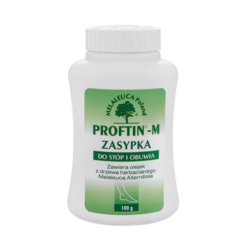 Proftin-M zasypka do stóp zapobiega rozwojowi grzybic skóry stóp oraz chorób bakteryjnych. Zawiera olejek z drzewa herbacianego, który należy do najskuteczniejszych naturalnych środków bakteriobójczych i grzybobójczych. Właściwości przeciwgrzybiczne olejku z drzewa herbacianego zostały zatwierdzone badaniami klinicznymi prowadzonymi na Oddziale Dermatologicznym Szpitala Wojewódzkiego w Bytomiu z udziałem Śląskiego Uniwersytetu Medycznego.