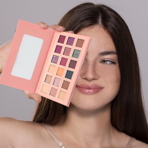 Paleta posiada aż 18 różnorodnych cieni. Odcienie są niezwykle zróżnicowane, dzięki czemu masz mnóstwo możliwości wykonania makijażu, zarówno dziennego jak i wieczorowego. Makijaż z naszą paletką może być delikatny, elegancki, romantyczny, a także wieczorowy. W naszej paletce znajdziesz zarówno odcienie nude, jak i kolorowe.