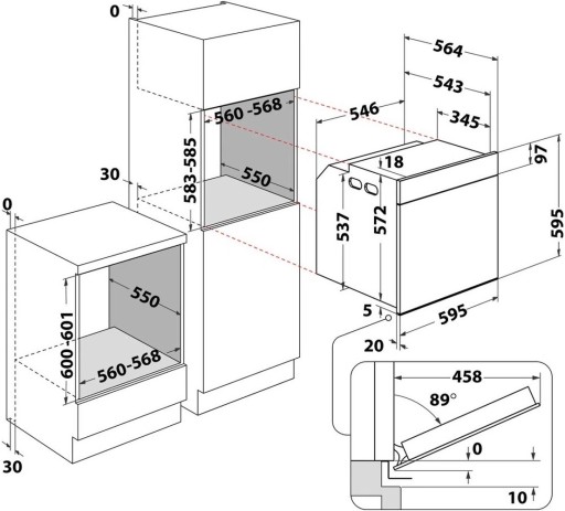 - Minimalna szerokość niszy: 560