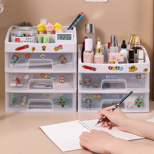 Nasz produkt zapewnia cztery praktyczne poziomy do zagospodarowania, z czego trzy to pojemne i przestronne szufladki, a górna półka to organizer, który odseparuje od siebie kosmetyki. Dzięki tej konstrukcji możliwe jest uporządkowanie i pomieszczenie dużej ilości różnorodnych przedmiotów kosmetycznych w jednym miejscu. Kremy, pudry, fluidy , ceinie do powiek, pomadki, kredki, pędzle oraz akcesoria do włosów i paznokci znajdą swoje miejsce w naszej szkatułce kosmetycznej.