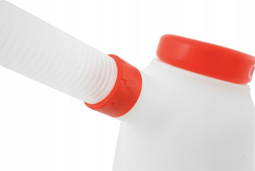 Wykonany z wytrzymałego tworzywa PE odpornego na płyny eksploatacyjne posiada praktyczny elastyczny lejek oraz przykręcaną pokrywę.