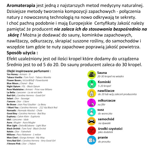 PRZYKŁADOWE ZASTOSOWANIE OLEJKÓW ZAPACHOWYCH: