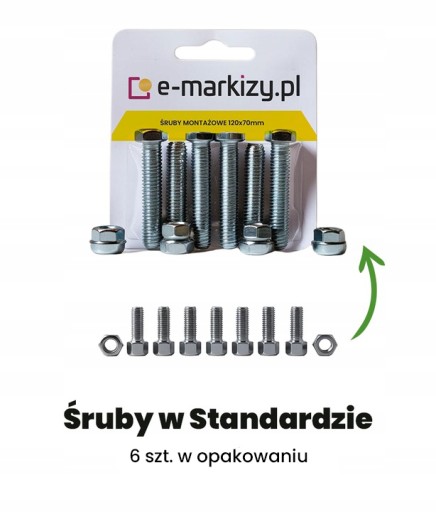 W komplecie każdej markizy występuje komplet śrub montażowych