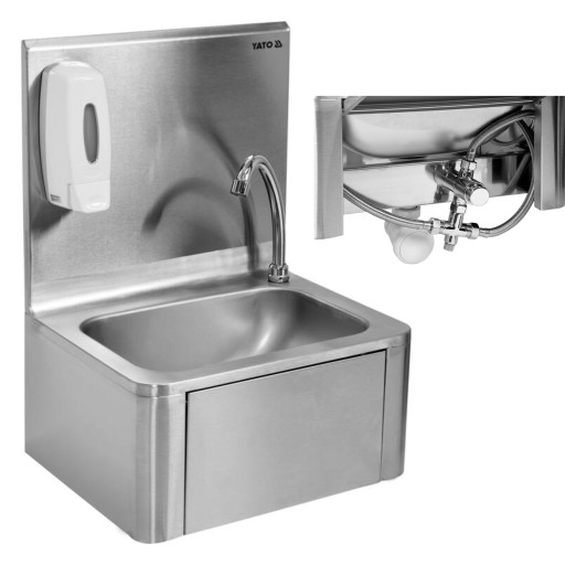 YATO GASTRO РАКОВИНА ДЛЯ РУЧКИ, АКТИВИРУЕМАЯ КОЛЕННЫМ ДИСПЕНСЕРОМ 400x330x570 мм YG10010