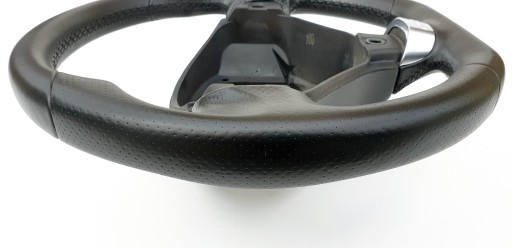 Przedmiotem ogłoszenia jest skórzana kierownica do Peugeota RCZ. Kierownica posiada w dolnej części "aluminiowy" pierścień z napisem RCZ i co warte zaznaczenia dół tej kierownicy jest bardziej spłaszczony, szerzej spłaszczony niż w kierownicach 308/308CC.