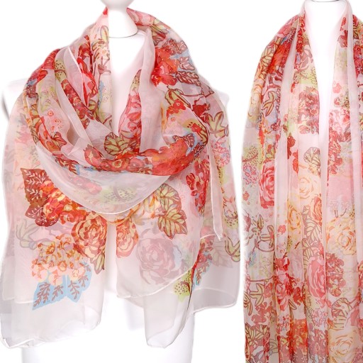 - duże wymiary chusty pozwalają owinąć modnie szyję, puścić luźno w dół lub zarzucić na ramiona i plecy.