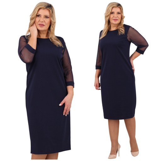 ЭЛЕГАНТНОЕ ПЛАТЬЕ, ГЛАДКОЕ, РУКАВ В СЕТКУ, ПОЛЬСКИЙ ПРОИЗВОДИТЕЛЬ, РАЗМЕРЫ