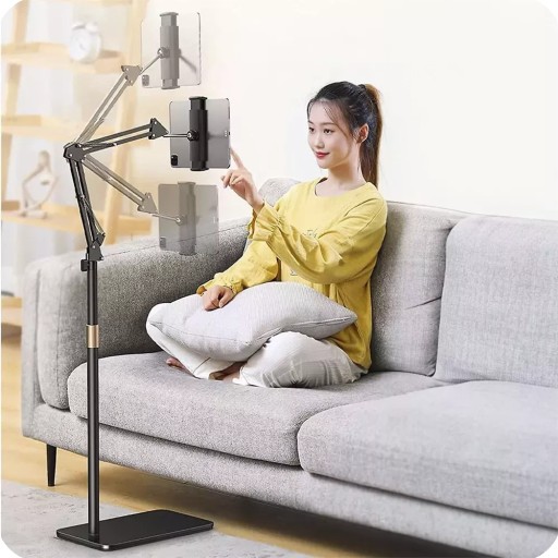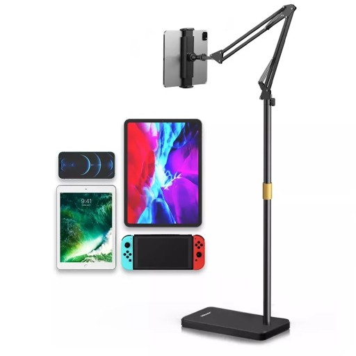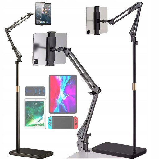 ✔️ W zestawie: podstawa na podłogę, regulowane ramię, uchwyt na tablet