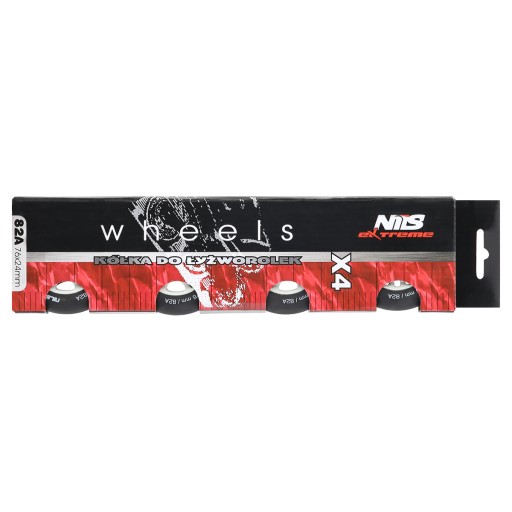 Набор из 4 резиновых колес для роликовых коньков NILS EXTREME, 76 мм, 82A, ЧЕРНЫЙ