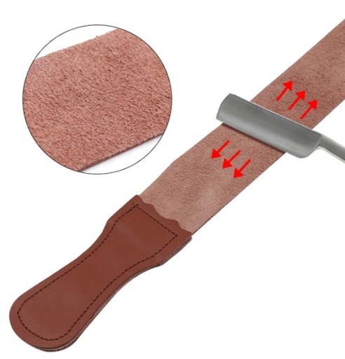 - Skórzany pas do ostrzenia, polerowania i wygładzania brzytwy.