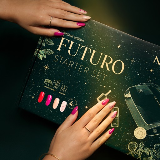 Podaruj odrobinę radości komuś, kto jest Ci bliski lub wręcz spraw ją sobie, jeśli tylko masz na to ochotę. Chcesz nauczyć się samodzielnie malować paznokcie lakierami hybrydowymi? A może pragniesz wymienić swoją lampę LED na nowszy model? Sięgnij po zestaw FUTURO STARTER SET, który jest idealny zarówno dla osób początkujących, jak i zaawansowanych. Co w nim znajdziesz? Bestsellerową lampę LED FUTURO TOUCH, bazę i top hybrydowy oraz niezbędne akcesoria takie jak polerka, pilnik, drewniane patyczki, Cleaner i tampon z waty celulozowej.
