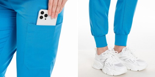 Zwężane nogawki zakończone ściągaczem zapewniają stylowy wygląd bez rezygnacji ze swobody ruchów i wygody podczas pracy.