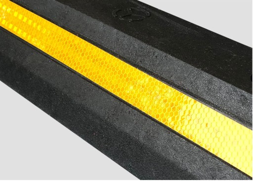 Dla zwiększenia bezpieczeństwa na powierzchni ograniczników naklejono odblaskową, odporną na ścieranie żółtą taśmą polimerową Taśma przyciągają uwagę kierowcy, a także w trudnych warunkach atmosferycznych ułatwia parkowanie.