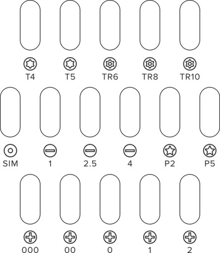 - Phillips - 000, 00, 0, 1 Pentalobe - P2, P5