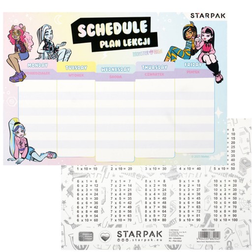 Starpak Plan Lekcji z Tabliczką Mnożenia Monster High 515600