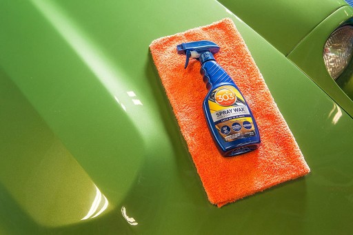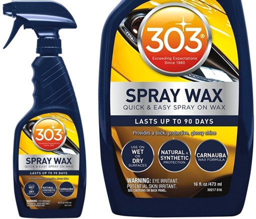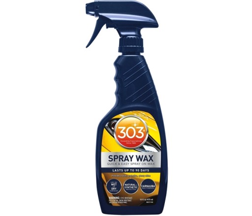 303® Automotive Spray Wax to najszybszy nabłyszczający wosk w płynie dla Twojego samochodu. To również delikatnie czyszcząca formuła, która usuwa z lakieru ślady po zaschniętej wodzie, kurz i inne niewielkie zabrudzenia. Pozostawia przy tym ochronną warstwę wosku, która osiąga trwałość aż do 90 dni. Zapewnia również ponadprzeciętną ochronę przed promieniami UV, zapobiegając blaknięciu lakieru.