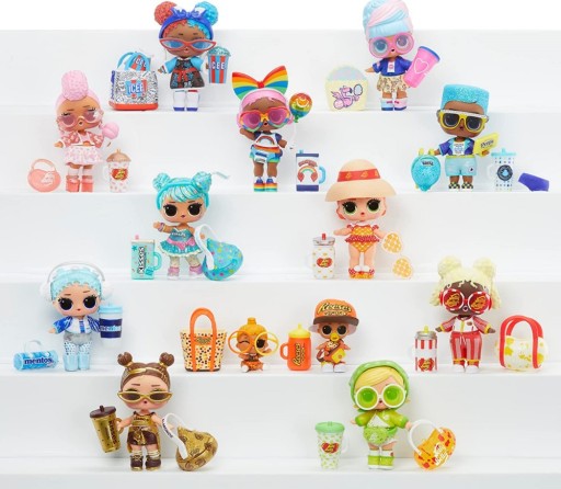 LOL Surprise nawiązało współpracę z amerykańskimi producentami kultowych słodyczy, aby dostarczyć ci laleczki w cukierkowych stylizacjach ICEE, Peeps, Hershey's Kisses, Reese's Pieces, Fun Sweets, Airheads, Mentos i Jelly Belly.