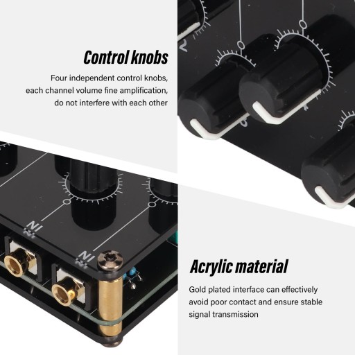 5. Materiał najwyższej jakości: Mikser stereo to materiał akrylowy, pozłacany interfejs może skutecznie uniknąć słabego kontaktu, aby zapewnić stabilną transmisję sygnału.