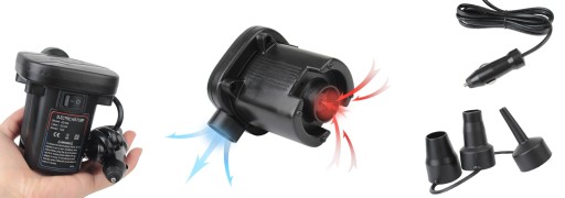 - Pompka działając z mocą 70W gwarantuje szybkie i łatwe napompowanie powietrzem materacy, piłek, basenów czy zabawek plażowych, a także wypompowanie z ich powietrza w prosty sposób.