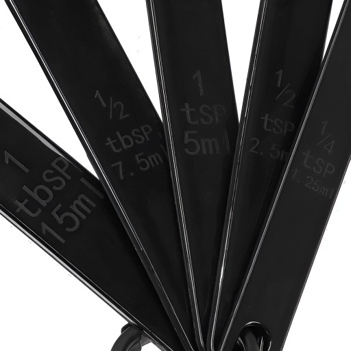 Zestaw składa się z miarek łączonych, co ułatwia ich przechowywanie i zapobiega zagubieniu.