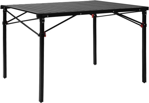 Nogi posiadają również mocne zapięcia. Upewnij się, że czerwony przycisk jest zablokowany po rozłożeniu stołu.