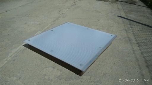Pokryciem wyłazu jest NAJCIEPLEJSZY z możliwych Poliwęglan o gr.10 mm CZTEROKOMOROWY (bezbarwny, mleczny lub przydymiony).