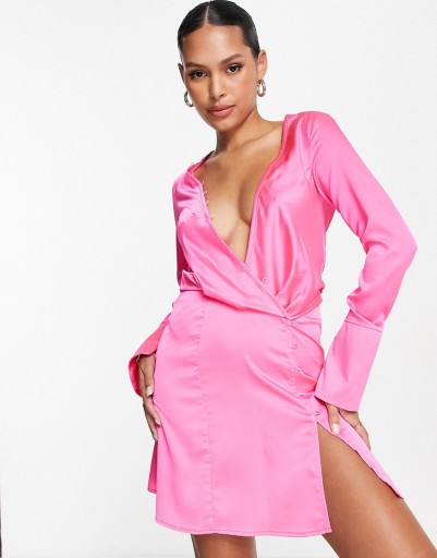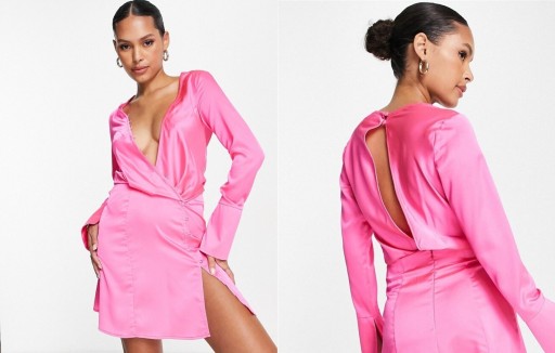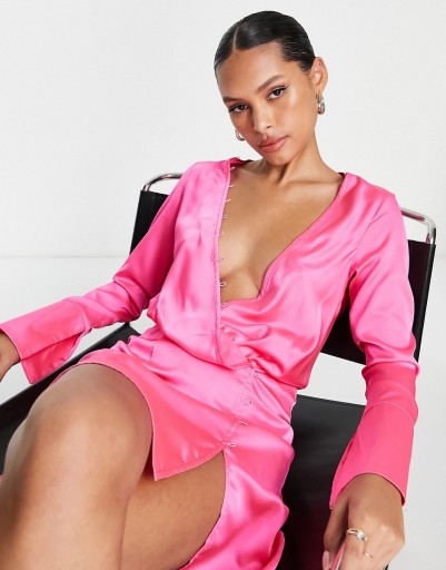 DESIGN Różowa satynowa sukienka mini S