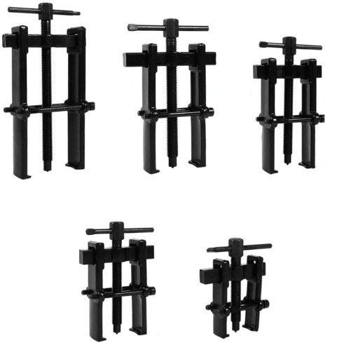 Zestaw ściągaczy do łożysk dwuramiennych 4 szt. - zestawe zawiera różne rozmiary ściągaczy co pozwaala na zdejmowanie łożysk o różnych średnicach. Ramiona wyposażone w dodatkowe śruby gwarantujące stabilniejsze ściąganie łożysk.