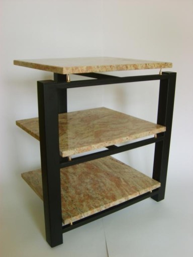 Konstrukcja z blatami z granitu jak i drewna jest specjalnie opracowana dla jak najlepszego pochłaniania drgań,ten stolik to wysokiej jakości audiofilska konstrukcja, bardzo solidna. Sam osobiście interesuje się tym hobby wiec wiem co jest dobre dla sprzętu. Waga prezentowanego stolika(3 półkowego) na zdjęciach to około 50kg!.
