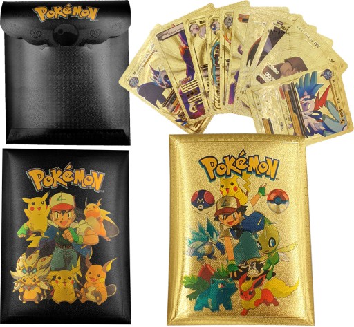 KOLEKCJONERSKIE KARTY POKEMON ZŁOTE CZARNE SREBRNE 30 KART