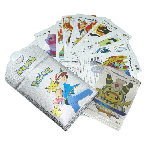 Карточки с покемонами и саше Пикачу, золото, серебро, черный, 30 карточек