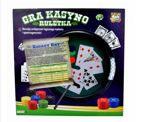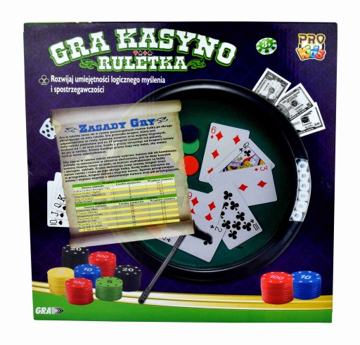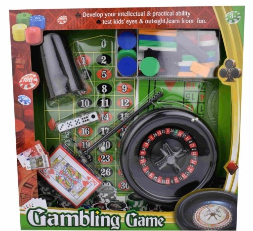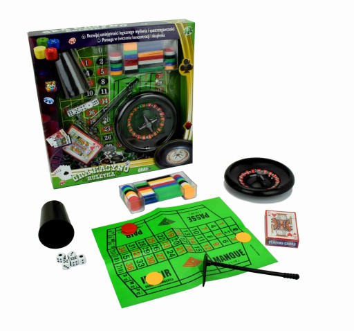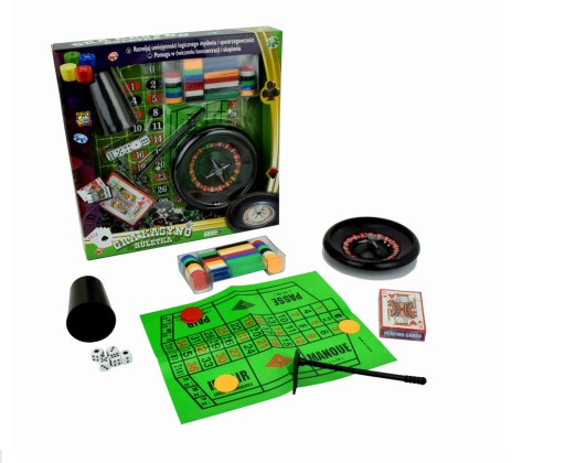 Doskonała rozrywka dla kilku osób. Zestaw składa się z gier losowych ale sporo zależy też od umiejętności graczy.Rekomendowana dla wieku 7+. Zawiera koło do ruletki, komplet żetonów, łapkę do zgarniania żetonów, kości do gry, kubek do kości i talię kart. Wielokolorowe opakowanie typu open box. 33x5x33 cm Wiek: 7+ Waga: 530 g