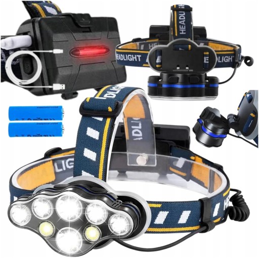 LATARKA CZOŁOWA LED NA AKUMULATOR X2 CZOŁÓWKA MOCNA 8 LED WERSJA PRO
