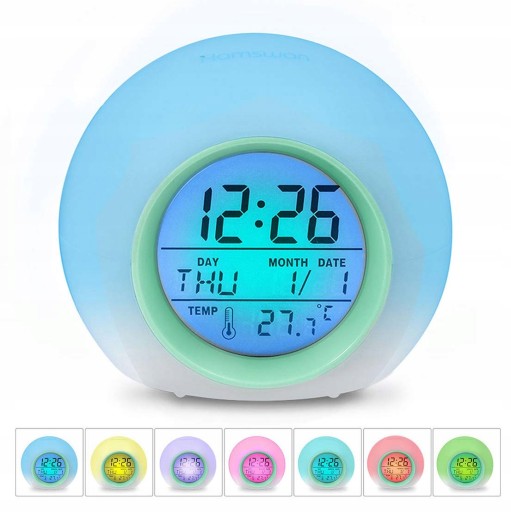 - 7 kolorów podświetlenia: Budzik posiada wymarzone podświetlenie aktywowane jednym dotknięciem.lekko dotknij zegara, sprawdź godzinę w ciemności bez włączania światła. Miękkie światło tworzy fantastyczną atmosferę jako lampka w nocy.