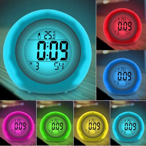 БУДИЛЬНИК ТЕРМОМЕТР НОЧЬ ЛАМПА LCD 7 ЦВЕТОВ