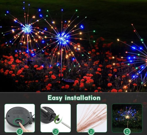 Kreatywne słoneczne światła ogrodowe: utwórz swoje ulubione kształty, takie jak kwiaty, drzewa, fajerwerki, duże koła, serca, spirale, kule. Tryb ciągły i migający. Nadaje się do dekoracji ogrodu, chodnika, kwietnika, ogrodzenia, dachu itp.