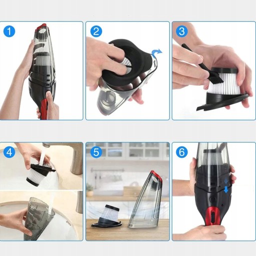 ✔️ 【Zaawansowany system filtracji】: Filtr tego ręcznego odkurzacza samochodowego jest wykonany z trwałego materiału, wyposażony w wymienny filtr, wielokrotnego użytku, łatwy do usunięcia i czyszczenia. Gdy kosz na śmieci jest pełny, naciśnij przycisk zwalniający, wyjmij filtr i umyj go małą szczoteczką nasączoną wodą z łagodnym mydłem.