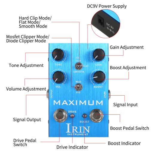 Педаль гитарного эффекта IRIN Overdrive 2 режима переключения