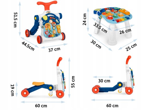 Oprócz nauki chodzenia, produkt idealnie nadaje się do nauki liczb, kolorów i kształtów.