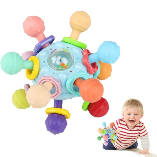 👶 【Zabawka do ząbkowania dla niemowląt】: Ta zabawka do ząbkowania dla niemowląt ma 12 kolorowych, łatwych do uchwycenia uchwytów, każdy z teksturowaną kulką. To sensoryczna zabawka dla dziecka, która rozwija małą motorykę, łagodzi ból zębów i rozwija świadomość sensoryczną.