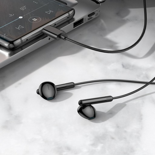 M9X to kablowe słuchawki audio, douszne ze złączem USB Type-C / Typ / Typu C / USB-C, wyposażone w mikrofon dający możliwość prowadzenia rozmów telefonicznych oraz przyciski do sterowania muzyką lub rozmowami jak i do sterowania głośnością. Słuchawki posiadają wbudowany cyfrowy przetwornik DAC, odpowiadający za jakość odtwarzanej muzyki jaki i kompatybilność z Twoim urządzeniem mobilnym.