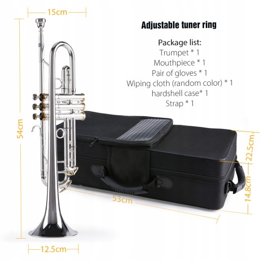 W zestawie wyściełany futerał do wygodnego przechowywania i transportu trąbki.