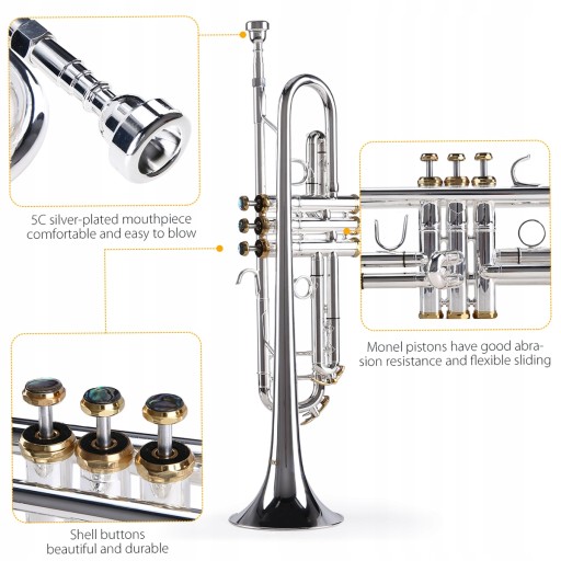 Profesjonalna płaska trąbka z posrebrzanym ustnikiem 5C, wygodna i łatwa do rozdmuchu, zapewniająca doskonały ton.
