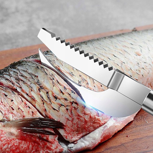 Wykonany ze stali nierdzewnej o jakości spożywczej, mocny, lekki i odporny na rdzę, usuwanie rybich łusek nigdy nie było łatwiejsze!
