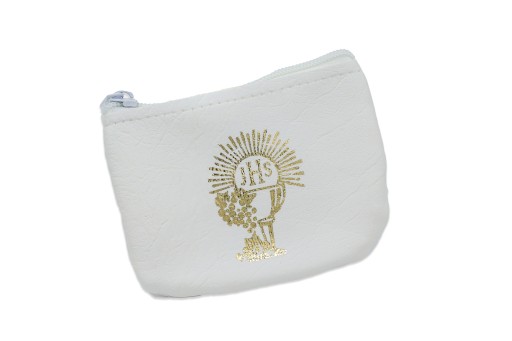 Etui na różaniec wykonane z mocnej dermy, zamykane zamkiem błyskawicznym spiralnym.
